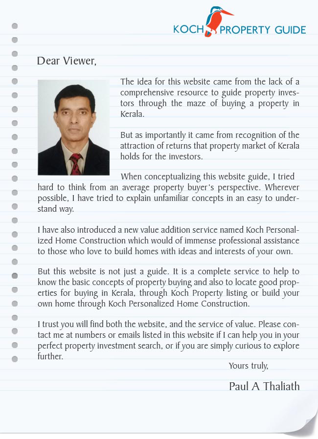 This website is owned and managed by Paul A Thaliath, a civil engineer by profession having a wide experience in conceiving, implementing and marketing of many successful property development projects in India and abroad.